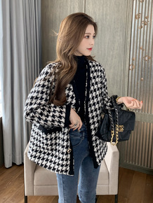 温柔色洋气复古小香编织呢外套女2021秋冬新款韩版...