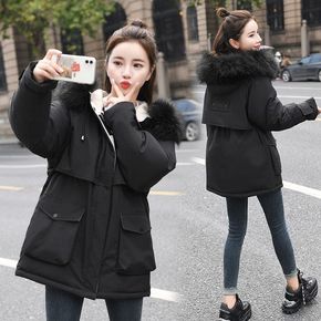 中长款棉衣女2021冬季宽松毛领休闲青年连帽羽绒棉...