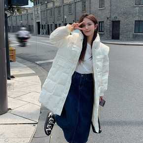 羽绒服女2022年新款韩国长款宽松爆款过膝加厚白鸭...