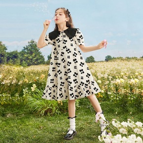 2021夏季新款长款大童礼服蕾丝边连衣裙童裙刺绣公...