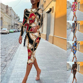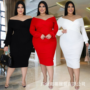 欧美跨境针织连衣裙大码女装秋冬新款裙子修身显瘦气质...