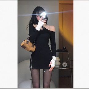 欧美女装2021新款韩国绒单肩露背链条吊带紧身包臀...