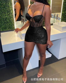 亚马逊外贸欧美女装夏季吊带鱼骨抹胸束腰绷带弹力针织...