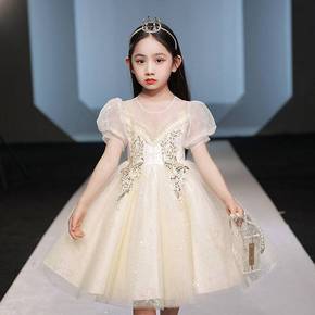 女童新款公主裙洋气夏季儿童蓬蓬纱主持人婚纱高端晚礼...