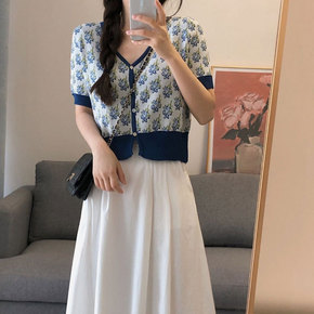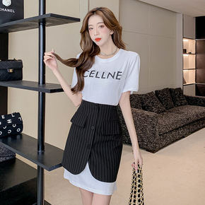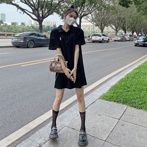 polo领T恤裙短袖t裙连衣裙女夏季小个子白色中长...