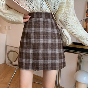 冬裙毛呢短裙裤女秋冬季加厚格子半身裙202新款包臀...