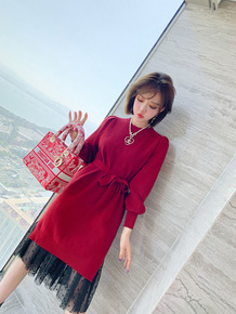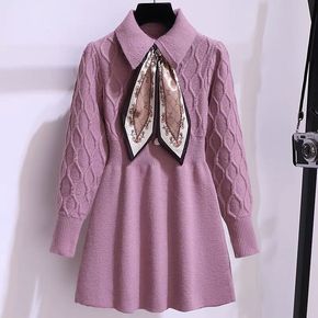 针织裙水貂绒连衣裙女甜美风休闲新款气质小香名媛打底...