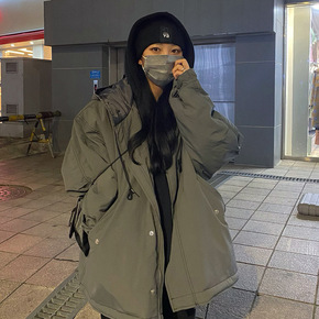 实拍2021年冬季新款羽绒棉衣棉服中长款设计感小众...