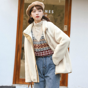 2021秋冬新款卡通刺绣加厚高领外套女羊羔毛保暖加...