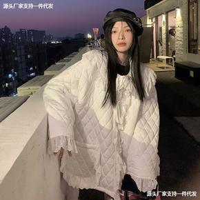 白色娃娃领菱格棉服女装秋冬季2021新款设计感小个...