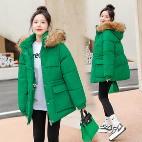 外贸派克服女冬装新款大毛领加绒加厚棉服短款翻领小个...
