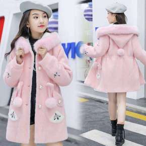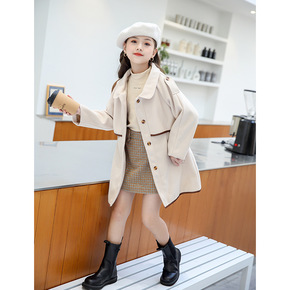 女童毛呢风衣外套中长款大童秋冬装韩版洋气女孩加厚儿...