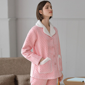 2020新款夹棉女士睡衣套装法兰绒秋冬季粉色珊瑚绒...