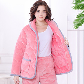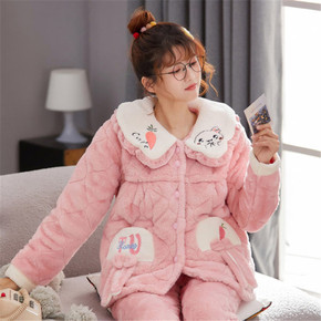 珊瑚绒睡衣女冬季加绒加厚三层夹棉超厚2021年新款...