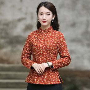 秋冬装新加棉旗袍小袄唐装上衣夹棉加厚保暖仿棉麻复古...