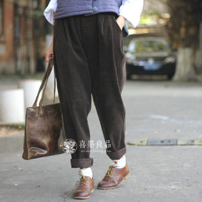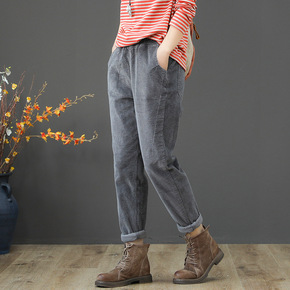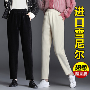 大码灯芯绒女裤秋冬季长裤子高腰加厚雪尼尔奶奶裤萝卜...