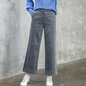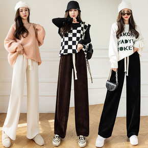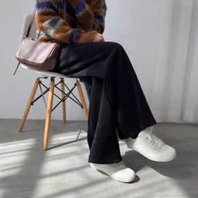 加厚雪呢尔条绒阔腿裤女秋冬新款灯芯绒高腰宽松直筒休...