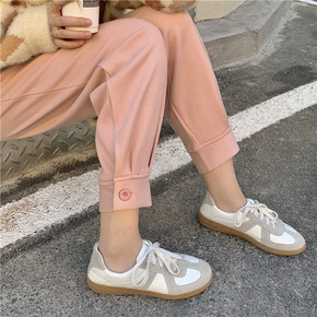 2021秋冬加绒个性束脚运动裤女 绣花字母卫裤 百...