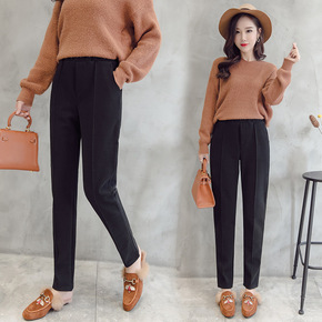 哈伦裤女2021秋冬新款高腰弹力松紧腰针织休闲裤韩...