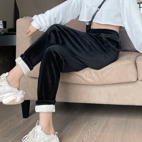 裤子女秋冬加绒加厚运动休闲高腰宽松束脚美式贴标卫裤...
