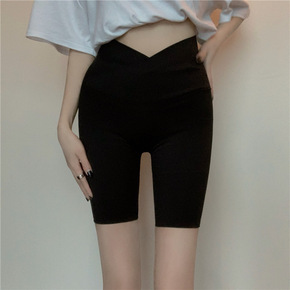港味交叉高腰鲨鱼裤五分裤女夏季薄款外穿提臀收腹芭比...