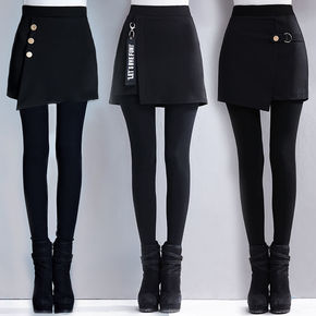 秋冬带裙子加绒加厚袜裤假两件打底裤女外穿显瘦踩脚包...
