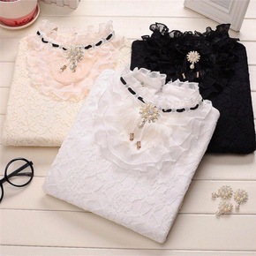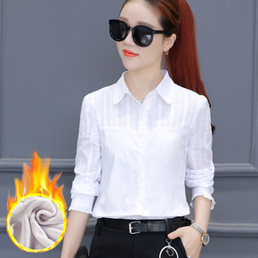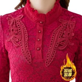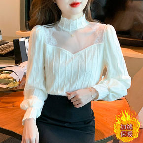 2022秋冬新款蕾丝衫加绒加厚打底衫女修身显瘦衬衣...