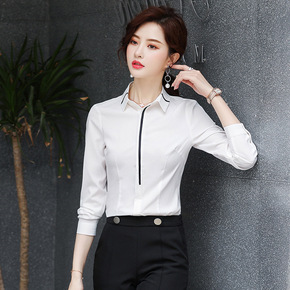 纯棉白色衬衫女长袖2022春秋季新款职业装女士衬衣...