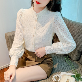 蕾丝打底衫女秋装2022年新款圆领叠穿女士衬衫灯笼...