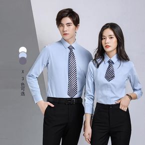 厂家直销冬装新款职业装衬衣工作服男女同款长袖白色衬...