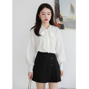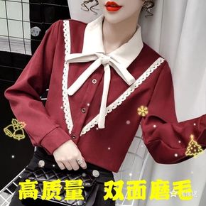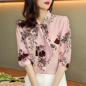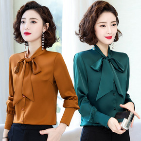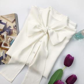 蝴蝶结雪纺衬衫女长袖衬衣洋气小衫2021春装新款内...