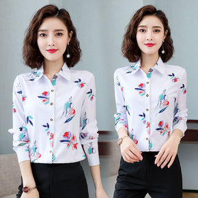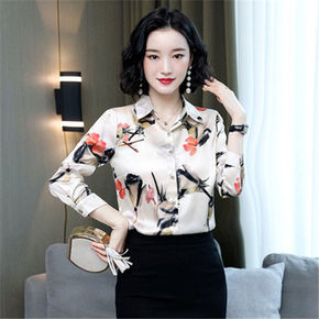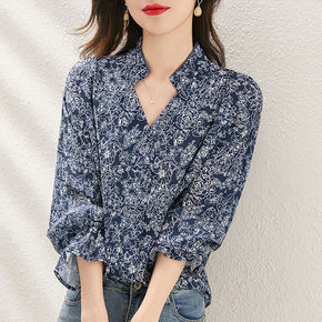 长袖方领雪纺衫女上衣2022春秋装新款衬衫时尚韩版...