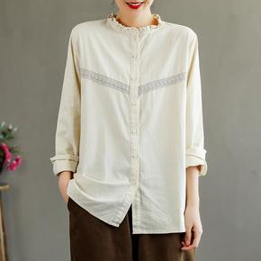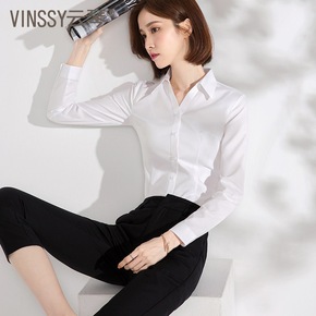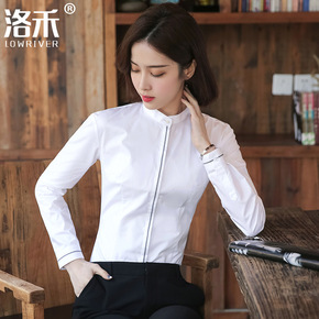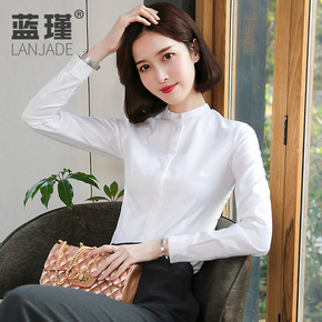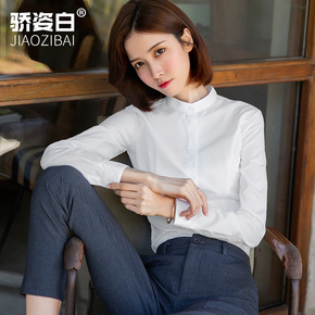立领衬衫女小个子长袖春秋装打底白色衬衣内搭职业工装...