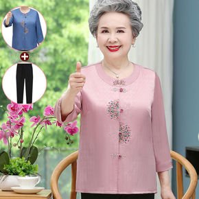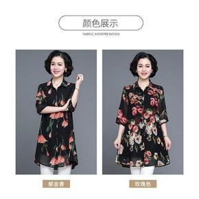 妈妈衬衫女春秋新款打底衫50中年女士衬衣夏装雪纺T...