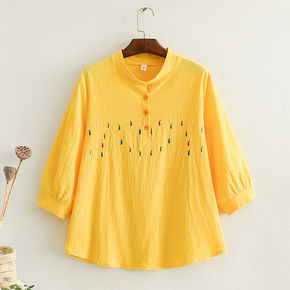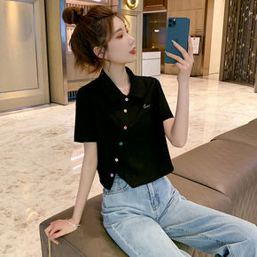 日系小清新夏新款小众旗袍盘扣短袖衬衫女宽松polo...