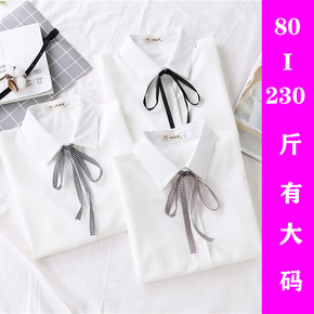 微胖女生白衬衫女+丝带长袖 胖mm200斤职业装短...