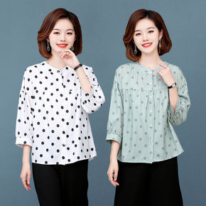 2021新款七分袖上衣衬衫女波点洋气宽松大码薄款时...