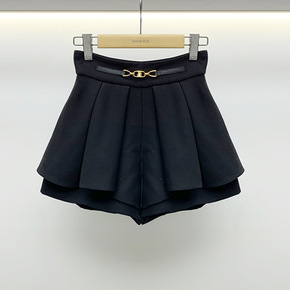 2021冬季新款高腰阔腿短裤压褶A字显瘦百搭半身裙...