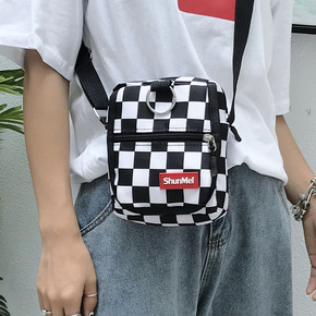 外贸女包2020新款韩版百搭格子帆布手机包时尚迷你...