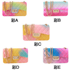 新款渐变涂鸦彩色果冻包菱格链条包外贸小方包单肩包斜...