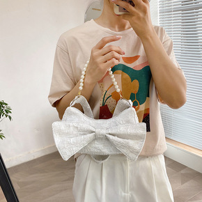 珍珠链条质感简约蝴蝶结女包夏季2021新款潮不规则...