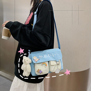 流行单肩手机包小包包女2021新款帆布包女时尚清新...