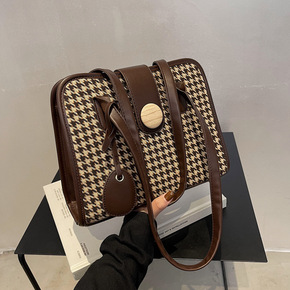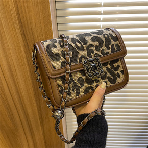 外贸包包女包2021新款质感撞色豹纹单肩包复古格纹...