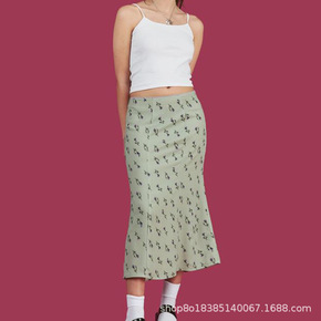 2020欧美风夏女装新款批发松紧腰定位印花半身裙...