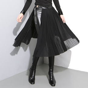 网纱半身裙女新款韩版减龄高腰字蓬蓬百褶拼接不规则纱...