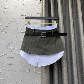 辣妹夏季设计感假两件A字休闲短裙女2022低腰工装...