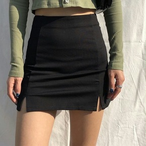 黑色开叉半身裙女2021春夏季新款短裙紧身显瘦a字...