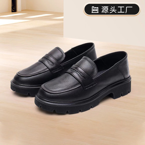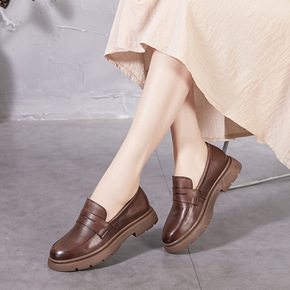 2022新款乐福大码单鞋女 平底奶奶英伦风鞋 一脚...
