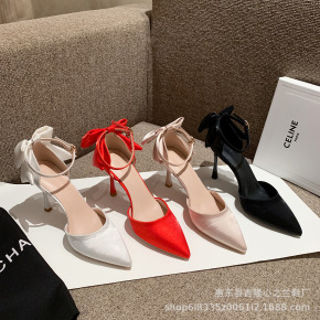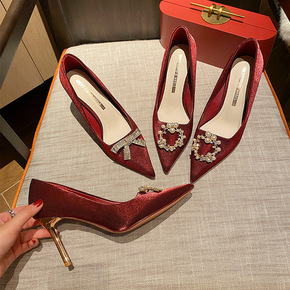818-28婚礼婚鞋新娘鞋尖头高跟鞋女细跟2021...