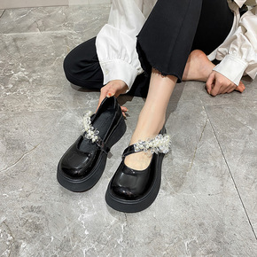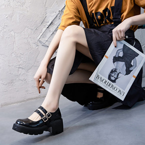 2022欧洲站新款厚底玛丽珍英伦小皮鞋粗跟高跟方头...